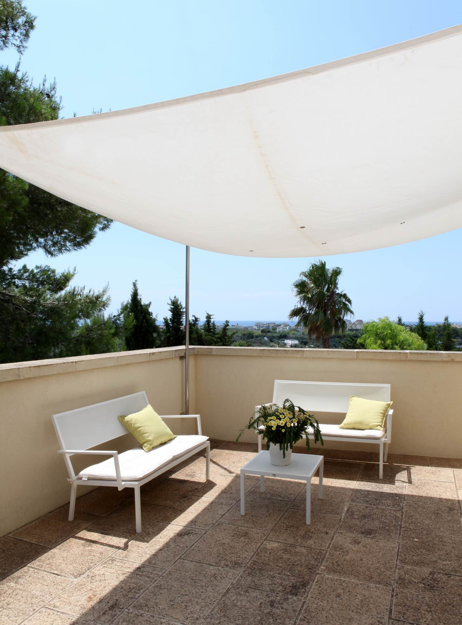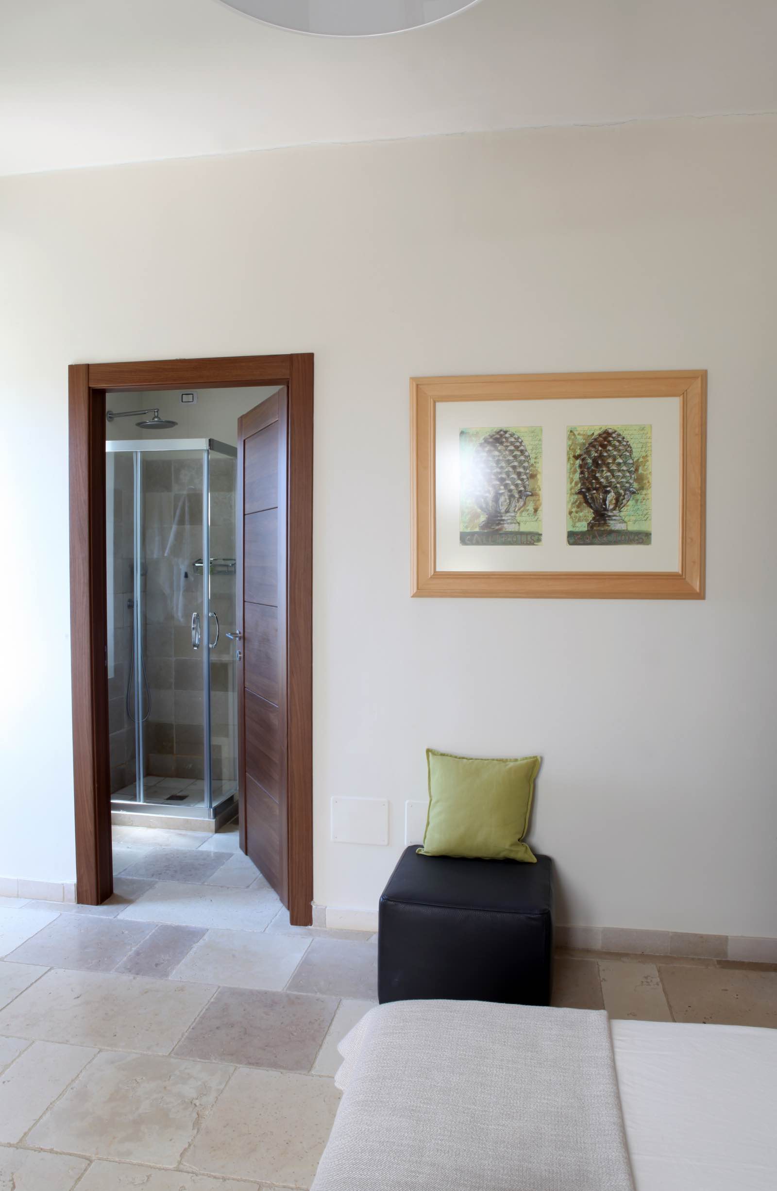 La Suite delle Pigne prende il nome dai suoi particolari quadri come tutte le altre suite. Si sviluppa in due ambienti, una zona living con un bellissimo e confortevole divano, una camera da letto matrimoniale, una stanza da bagno dotata di ogni confort ed una spaziosa veranda che affaccia sul bellissimo panorama che offre Masseria Ceratonia. La Suite si trova all’interno della struttura principale e si accede passando attraverso la reception salendo dalla scala antica interna. La Suite delle Pigne divide il pianerottolo d’ingresso con la Suite dei Candelieri, quasi gemella ma senza veranda. Due coppie di amici senza figli possono pensare di prenotarle entrambe e di vivere un’esperienza da “vicini di camera”.
